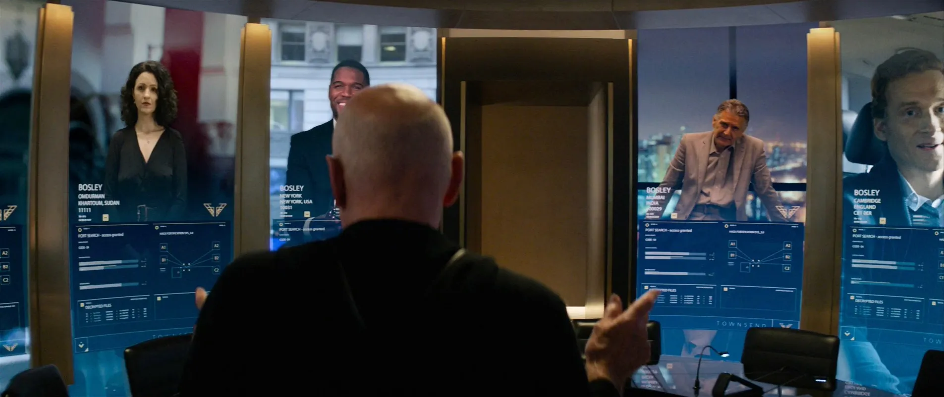 Cast: Kristen Stewart as Sabina Wilson, Naomi Scott as Elena Houghlin, Ella Balinska as Jane Kano, Elizabeth Banks as Bosley, Patrick Stewart as John Bosley, Djimon Hounsou as Bosley, Sam Claflin as Brok, Noah Centineo as Langston, Nat Faxon as Fleming, Chris Pang as Jonny Smith, Jonathan Tucker as Hodak, Luis Gerardo Méndez as The Saint, David Schütter as Ralph, Hannah Hoekstra as Ingrid (Angel), Jane Chirwa as Passing Woman (Angel), Emre Kentmenoğlu as Prince Alim Hassan, Murali Perumal as Pradeep Prasad, Sebastian Kroehnert as Sven Ludwig, Franz Xaver Zach as Watchmaker Schmidt, Andreas Schröders as The Accountant, Marie-Lou Sellem as Fatima Ahmed, Batur Belirdi as Bettor, Anna Drexler as Susan Olson, Tanem Çalbayram as Istanbul Ferry Girl, Michael Strahan as NY Bosley, Neil Malik Abdullah as LA Bosley, Nick Dong-Sik as LA Bosley, Dennenesch Zoudé as LA Bosley, Peter Sikorski as Brok Lobby Security, Frederic Böhle as Level 4 Guard, Eric Bouwer as Ralph Guard #1, Marco Grahl as Cyclist, Livia Matthes as Model, Tessa Achtermann as Dancer, Jabar Werner as Dancer, Daria Nowak as Dancer, Kiani Del Valle as Dancer, Jakob Yaw Yeboah as Dancer, Helen Aschauer as Dancer, Robert Clotworthy as Charlie (voice), Jaclyn Smith as Kelly Garrett, Danica Patrick as Driving Instructor, Ronda Rousey as Fight Instructor, Laverne Cox as Bomb Instructor, Hailee Steinfeld as Angel Recruit, Chloe Kim as Angel Recruit, Lili Reinhart as Angel Recruit, Aly Raisman as Angel Recruit, Huda Kattan as Angel Recruit, Robert Maaser as Big Man (uncredited), Nathalie Nailly as Partyguest (uncredited), Samantha Hunter Ogan as Charlie's Angels Recruit (uncredited), Danny Pardo as Old Man in Market (uncredited), Anouar H. Smaine as Istanbul Muezin (uncredited), Monique StaTeena as Gate Angel (uncredited)